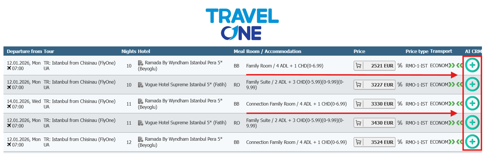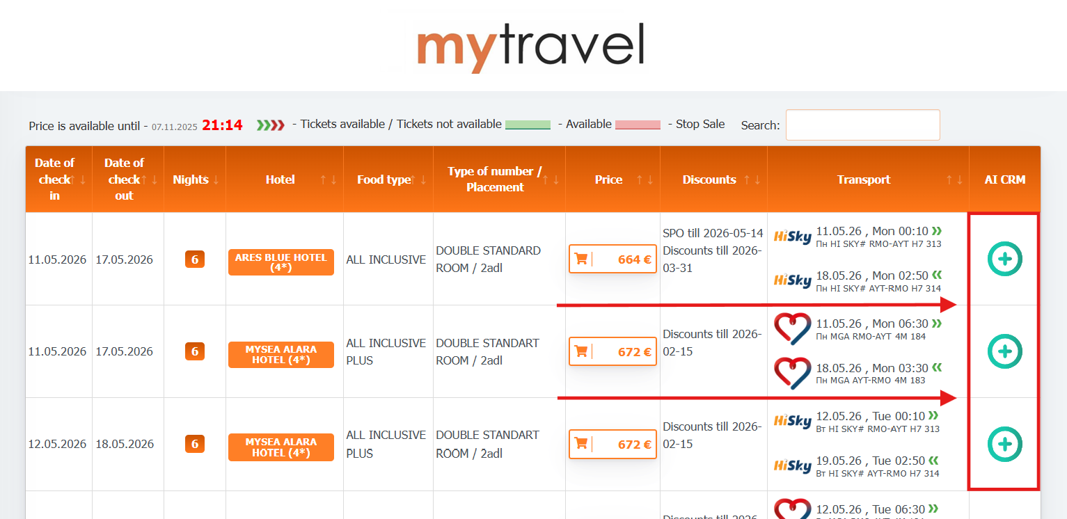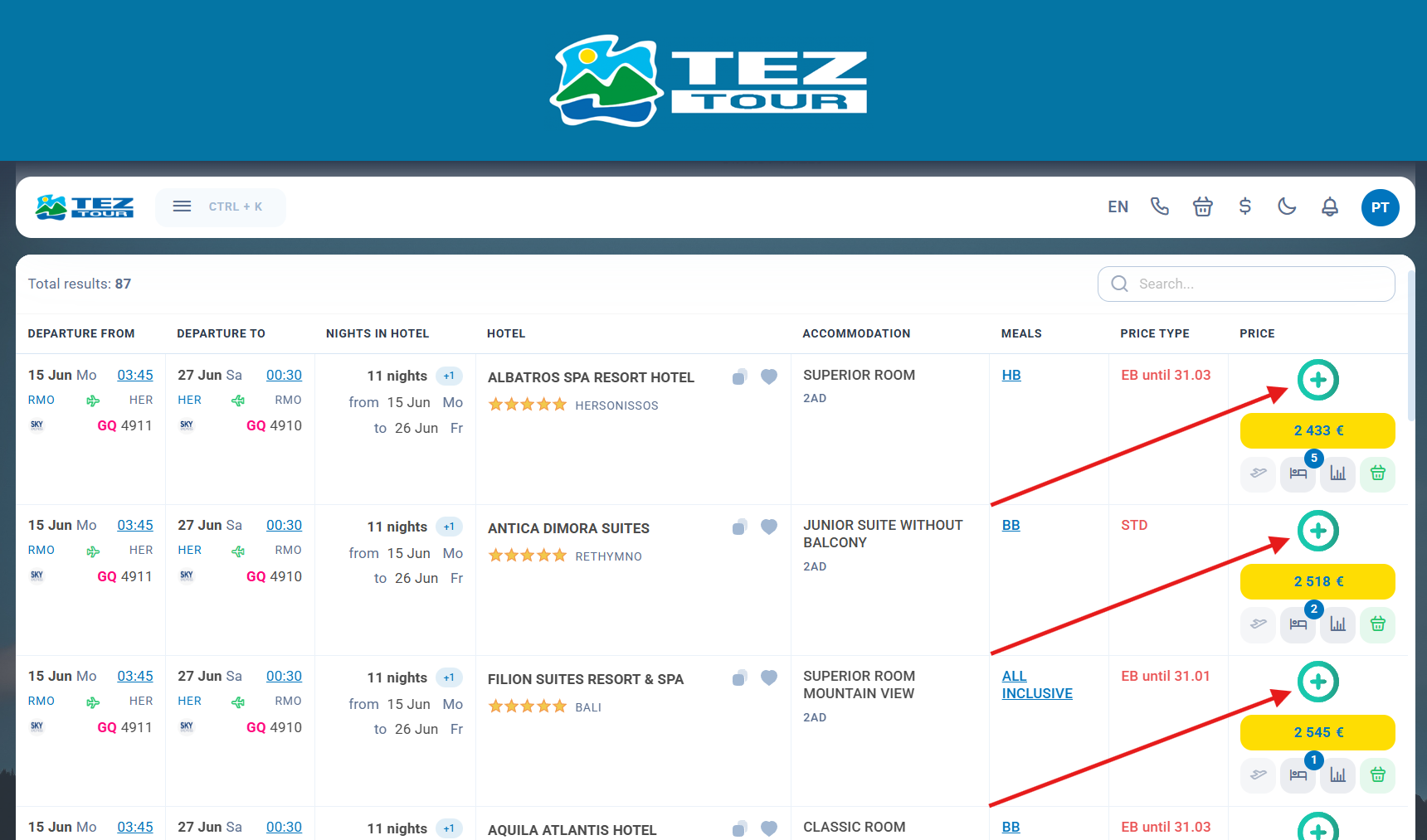 And plus icons on the new search of Tez Tour: